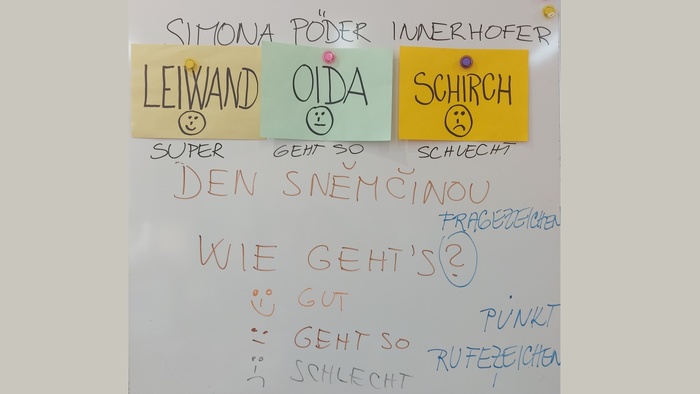 Dne 8. 11. 2023 se žáci 8. a 9. ročníků měli možnost zúčastnit v rámci Dne s němčinou jazykových animací, které vedla velmi příjemná paní lektorka Simona Pöder Innerhofer ze společnosti Tandem. Cílem animace bylo podpořit zájem dětí o výuku němčiny a seznámit je s možnostmi jejího využití v běžném životě. Žáci si formou hravých aktivit osvojili reálie německy mluvících zemí, odhalili v Dominu germanismy, naučili se několik slovíček z rakouské němčiny a Wiener Deutsch, procvičili si Buchstabierung (hláskování), konverzovali mezi sebou v němčině a také skládali větné hady. Podařilo se jim mnoho krásných vět, ale ta nej byla: „Wir stehen über alles.“ (Stojíme nade vším.) Paní lektorka byla velmi mile překvapena znalostmi našich žáků. Mnozí překvapili i sami sebe, jak už pěkně dokážou používat získané znalosti v praxi. Den s němčinou jsme si všichni báječně užili a dle reakcí všech lze tuto akci určitě hodnotit jako „leiwand“.