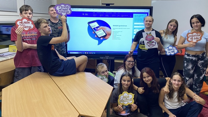 Příprava na olympiádu v mediální gramotnosti je v plném proudu. Tým žáků 9. A pilně doplňuje své znalosti z oblastí médií. Večerní on-line workshop o kritickém myšlení jsme si v pátek opravdu užili.