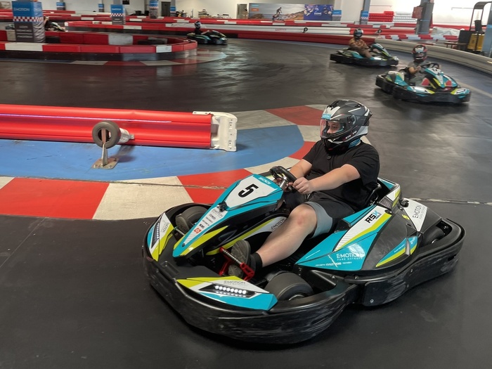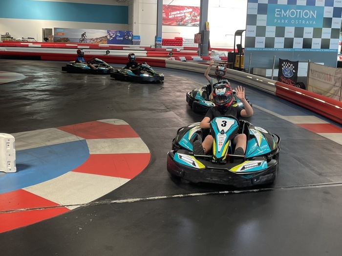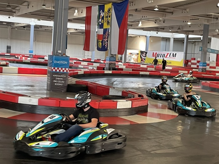 První zastávkou byl E-motion park, kde jsme si vyzkoušeli jízdu na elektrických motokárách. Každý měl možnost projet si trať několikrát, a díky měření časů jsme si mezi sebou i zasoutěžili. Atmosféra byla napínavá a zábavná – někteří žáci se dokonce nechali slyšet, že by se sem rádi vrátili i ve volném čase. Motokáry měly tedy mezi žáky velký úspěch!
