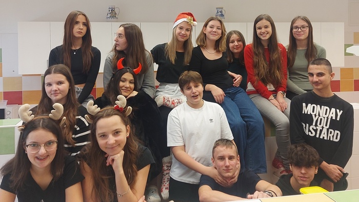 Dne 4. 12. 2023 si žáci devátých ročníků zpříjemnili výuku němčiny realizací projektu Weihnachtsbacken. Jejich úkolem bylo vytvořit recept na vánoční cukroví v němčině a následně jej prověřit v praxi. Během pondělního dopoledne se ze školní kuchyňky linula vůně perníčků, brownies, lineckého cukroví a dalších dobrot, souvisejících s Vánoci. Během pečení si žáci zvládli i zasoutěžit na tabletech v aplikaci Blooket, kde bylo jejich úkolem potrénovat a obohatit si slovní zásobu týkající se vánočního tématu. Výstupem celého projektu bylo nejen upečené cukroví, ale také kuchařka vánočních receptů v němčině.