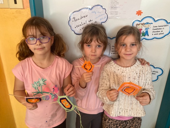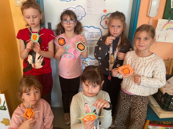 Děti si vyzkoušely zajímavou podzimní tvořivou činnost. Vznikaly krásné hvězdičky plné barev a fantazie. Tvoření je velmi bavilo, rozvíjelo jejich trpělivost, zručnost i smysl pro kombinaci barev. Hotové výrobky mohly použít na ozdobení třídy, pokojíčku, okna nebo poslouží jako ozdoba na vánoční stromeček.