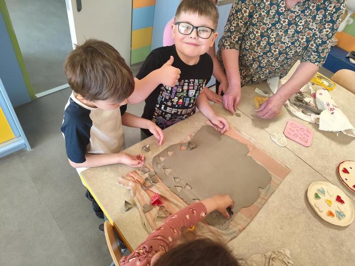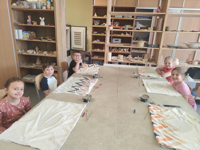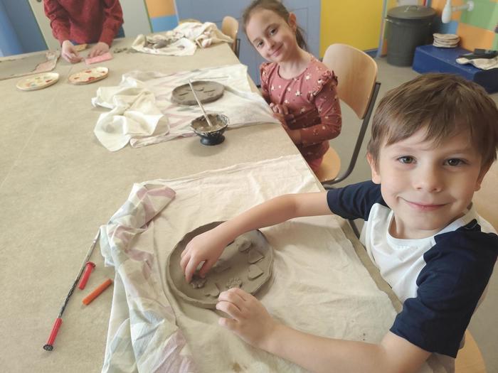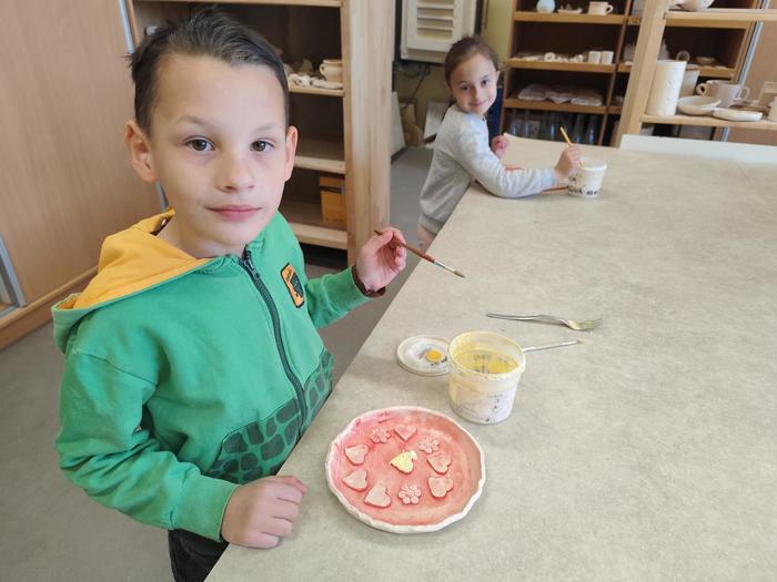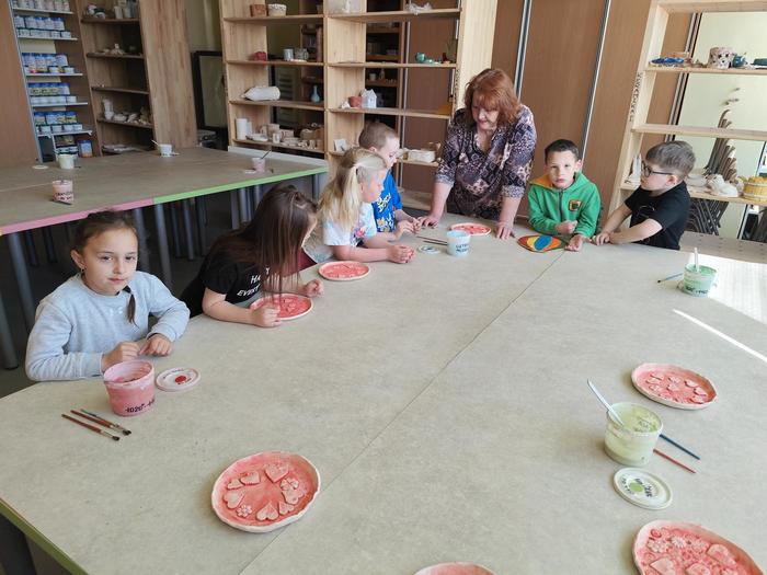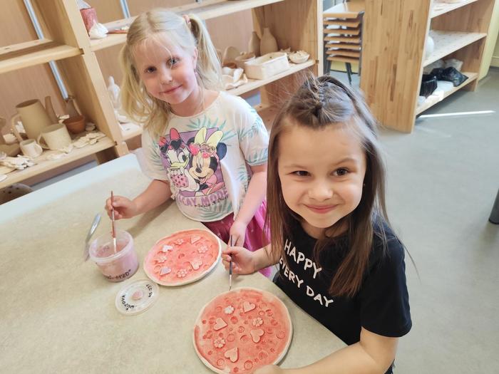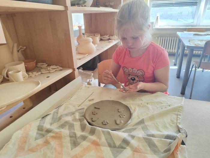 V květnu děti z přípravné třídy chodily do výtvarného ateliéru, kde tvořily z hlíny talířky jako dárek ke Dni matek.